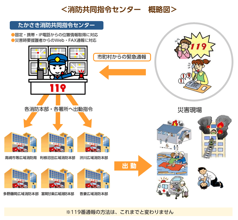 指令センター名称は「たかさき消防共同指令センター」とし、平成28年度から運用開始しています。